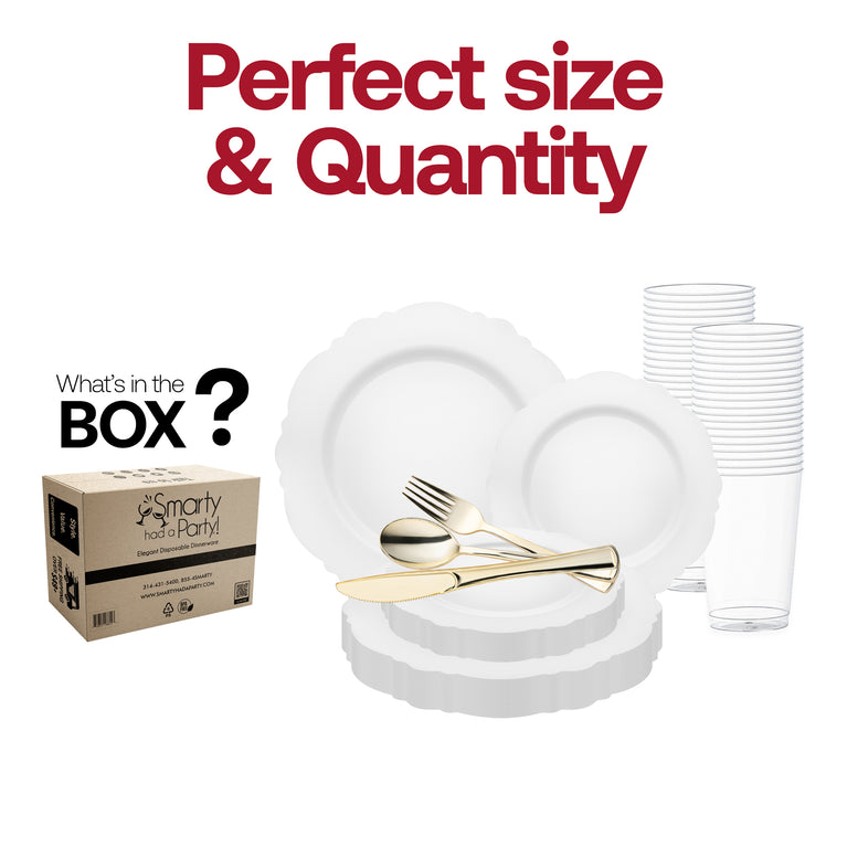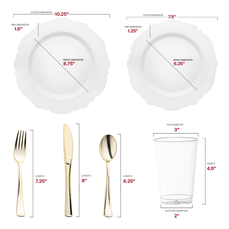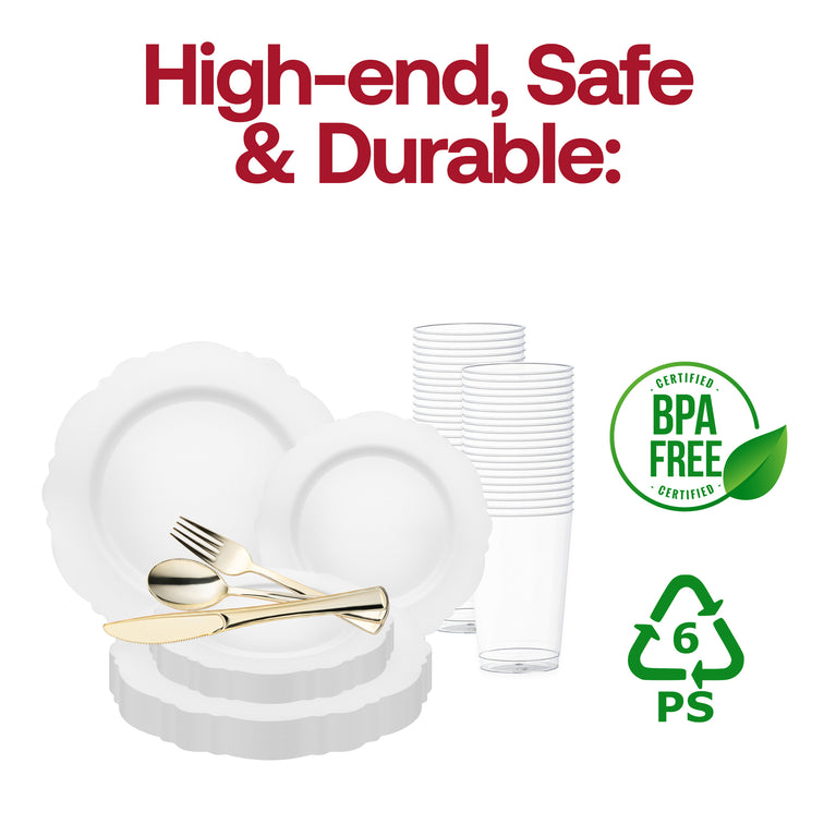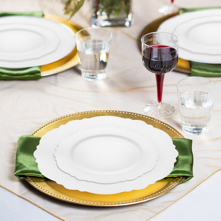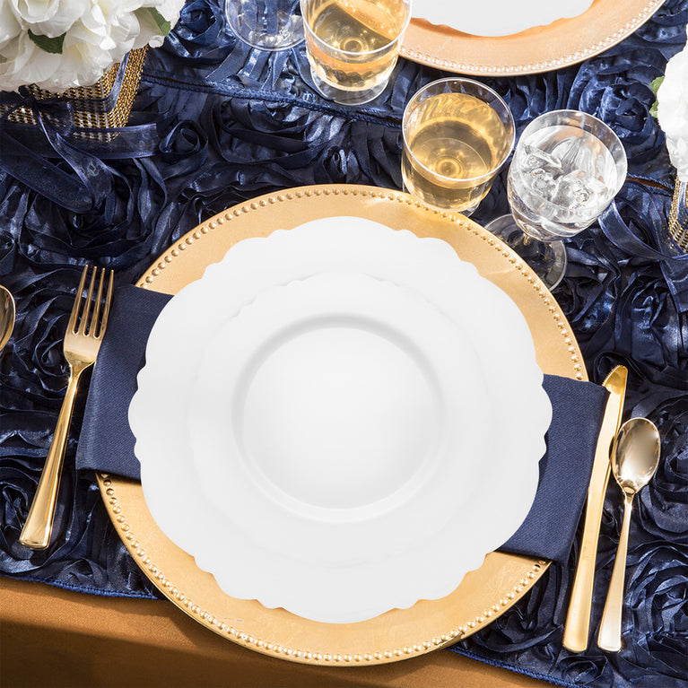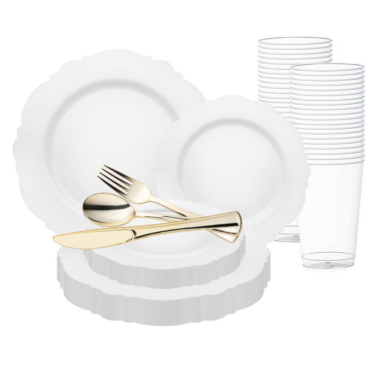 Solid White Round Blossom Disposable Plastic Wedding Value Set