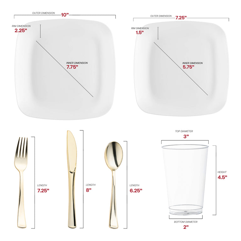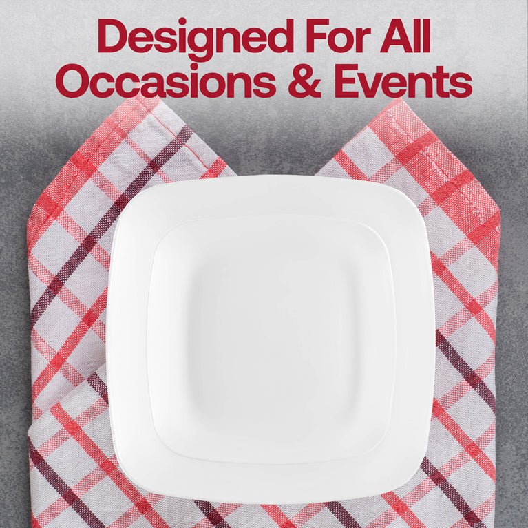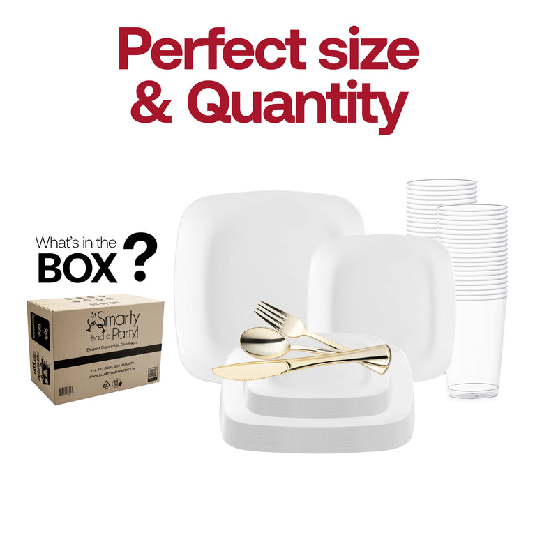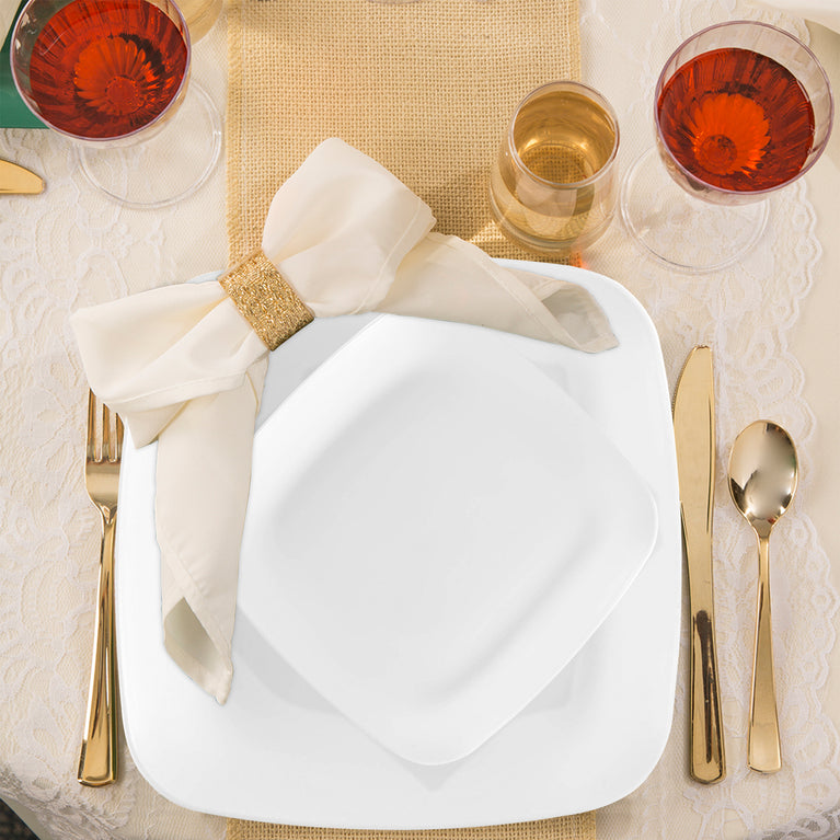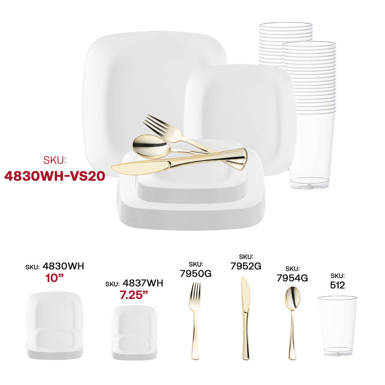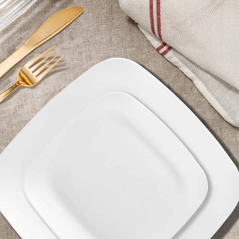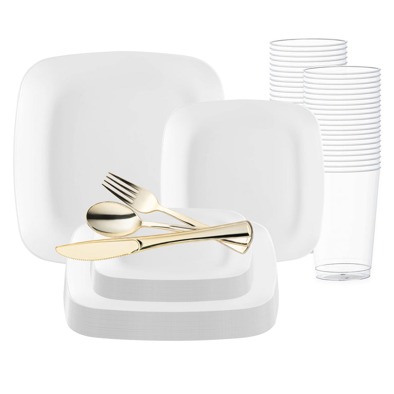 Solid White Flat Rounded Square Disposable Plastic Wedding Value Set