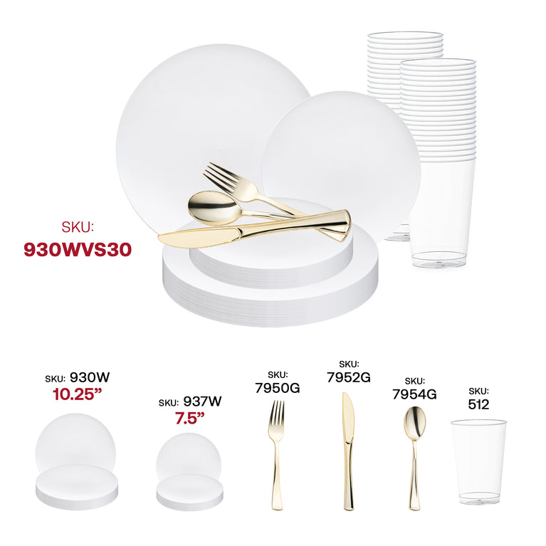 Solid White Organic Round Disposable Plastic Wedding Value Set