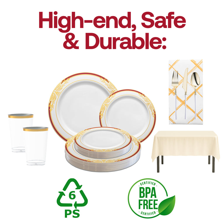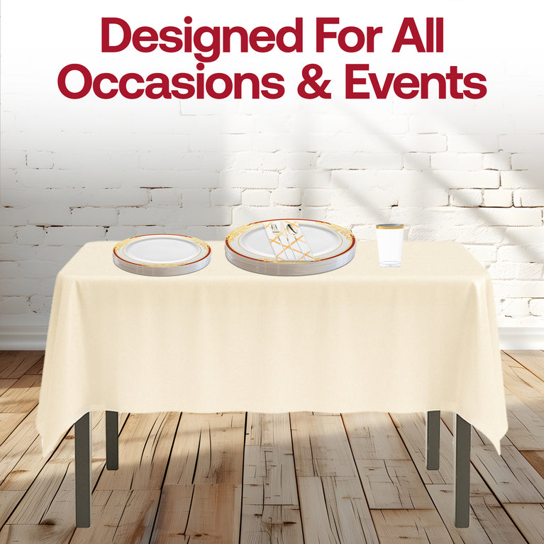 - Service for 60: 60 Dinner Plates, 60 Salad Plates, 60 Forks, 60 Spoons, 60 Knives, 8 Tablecloths, 100 Dinner Napkins and 60 Tumblers