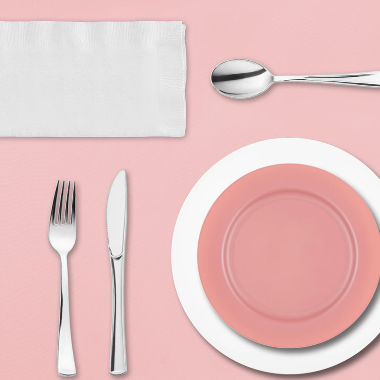 - Service for 60: 60 Dinner Plates, 60 Salad Plates, 60 Forks, 60 Spoons, 60 Knives, 8 Tablecloths, 100 Dinner Napkins and 60 Champagne Flutes