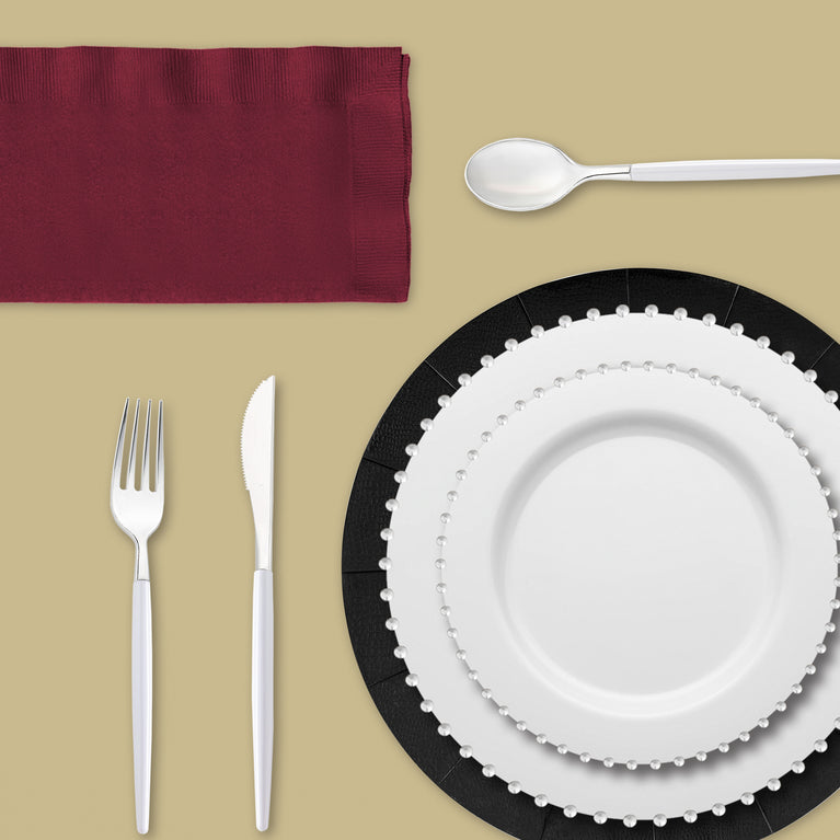 - Flatware: Silver with White