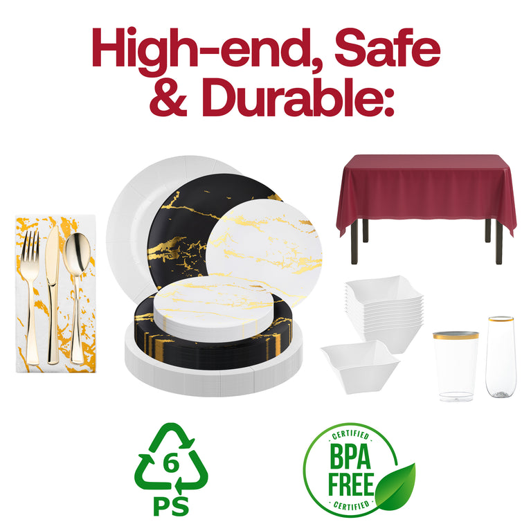 - Dinner Plates: Black with Gold