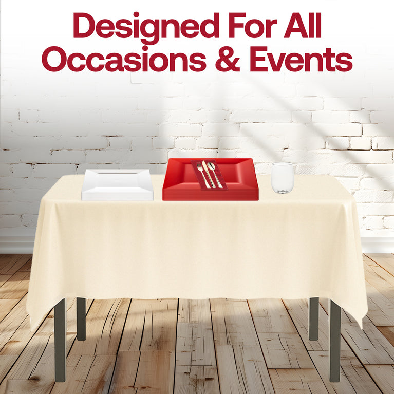 - Service for 60: 60 Dinner Plates, 60 Cake Plates, 60 Forks, 60 Spoons, 60 Knives, 8 Tablecloths, 100 Dinner Napkins and 60 Wine Glasses