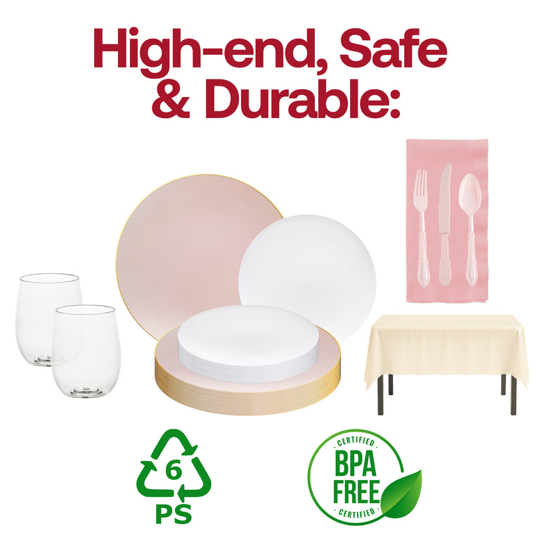 - Dinner Plates: Pink with Gold