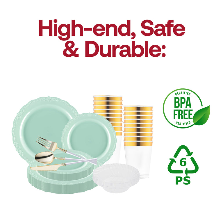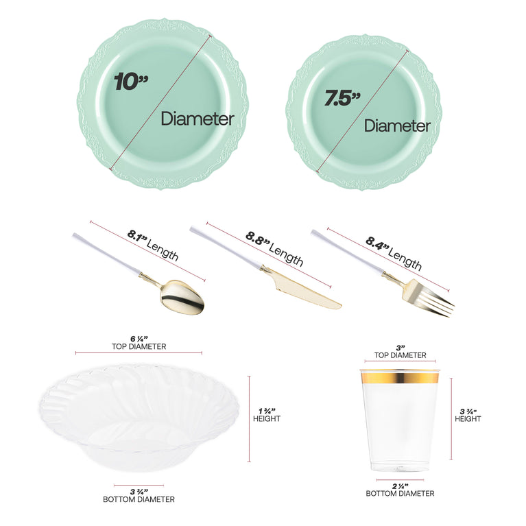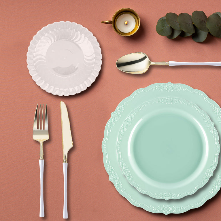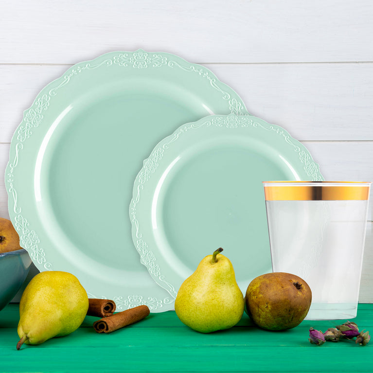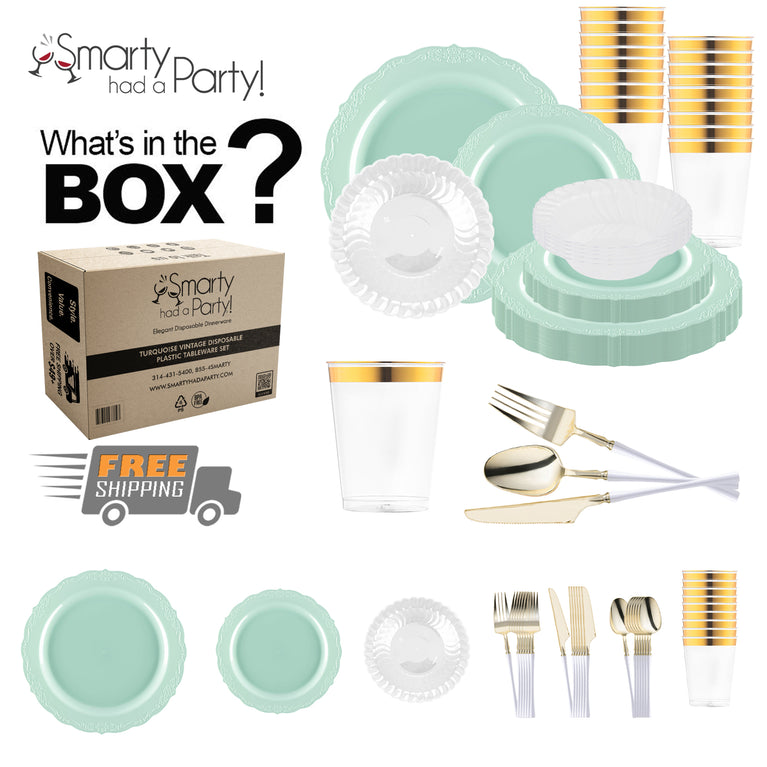 Turquoise Vintage Disposable Plastic Tableware Set