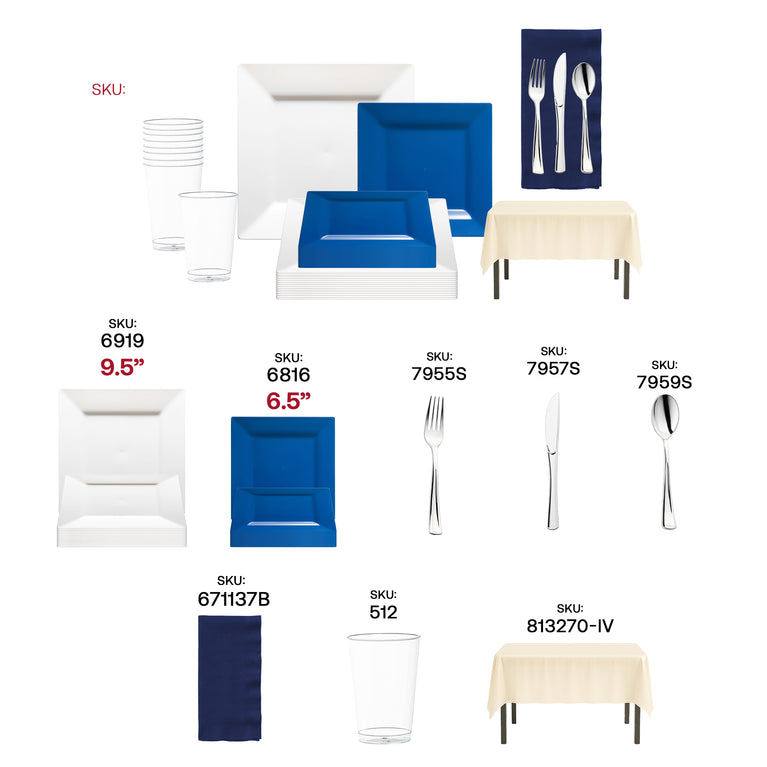 - Service for 60: 60 Dinner Plates, 60 Cake Plates, 60 Forks, 60 Spoons, 60 Knives, 8 Tablecloths, 100 Dinner Napkins and 60 Cups