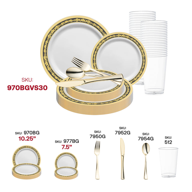 White with Black and Gold Royal Rim Plastic Wedding Value Set