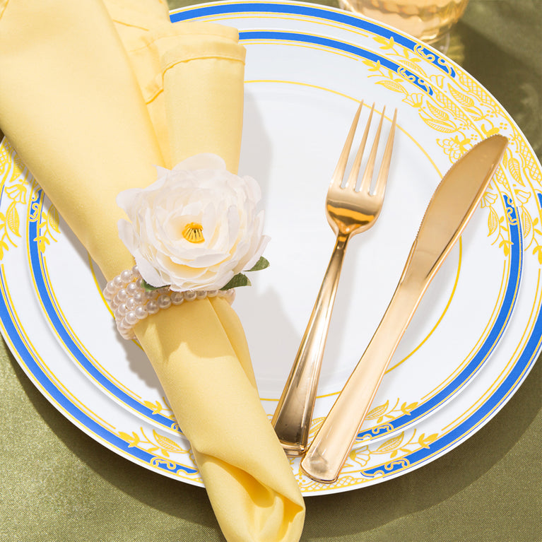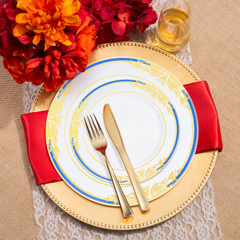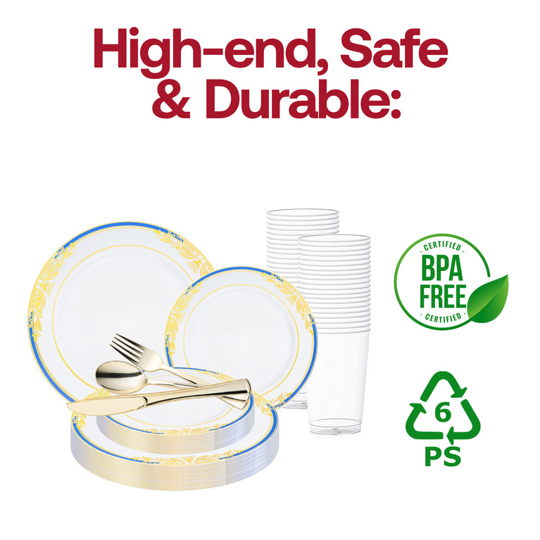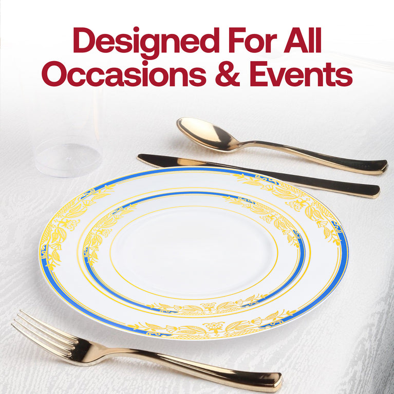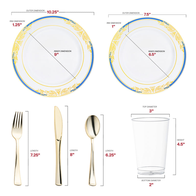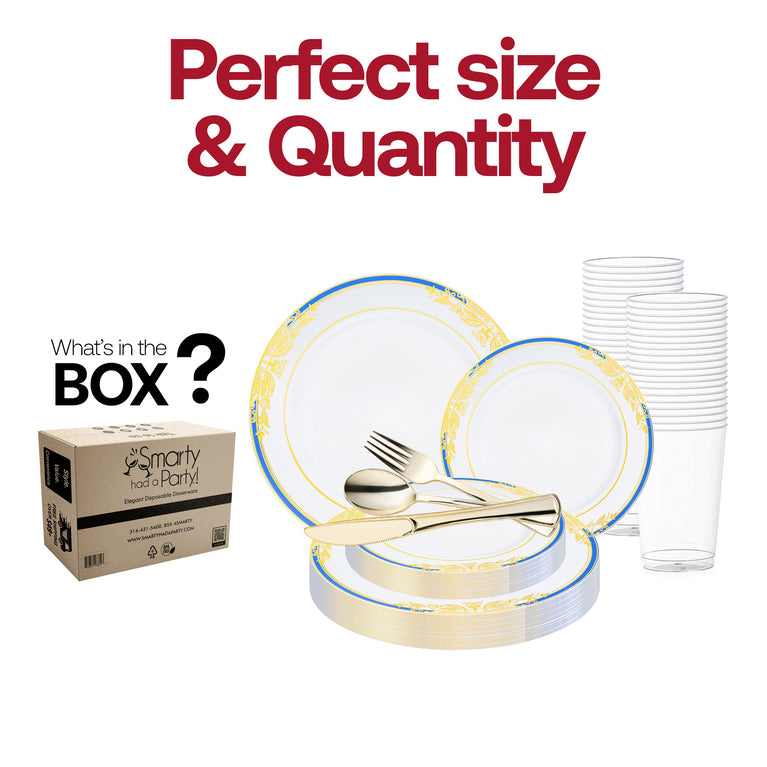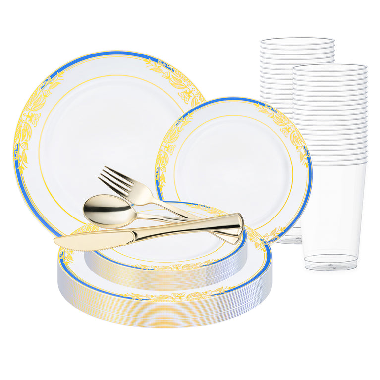 White with Blue and Gold Harmony Rim Plastic Wedding Value Set