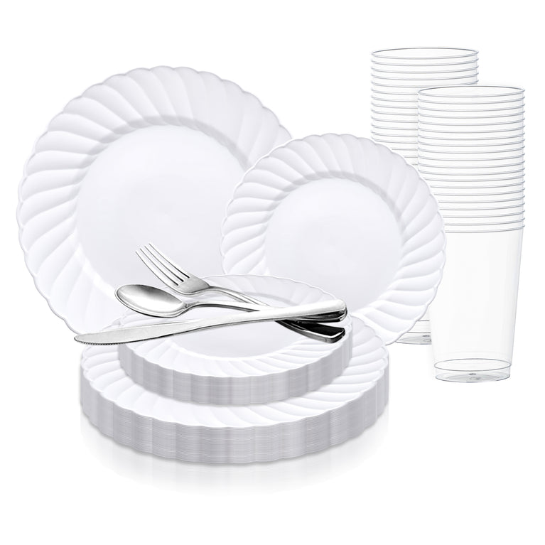 - Service for 144: 144 Dinner plates, 144 salad plates, 144 forks, 144 spoons, 144 knives and 144 12 oz. Tumblers
