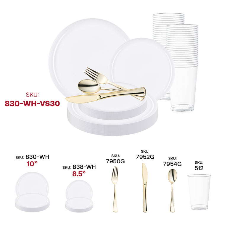 White Flat Round Disposable Plastic Wedding Value Set