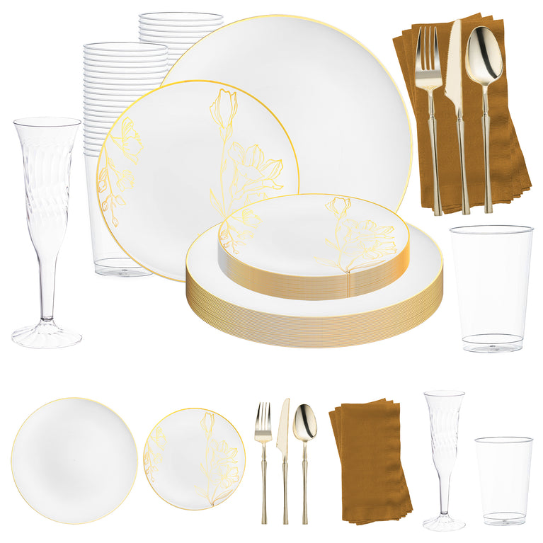 White with Gold Antique Floral Plastic Grand Wedding Value Set