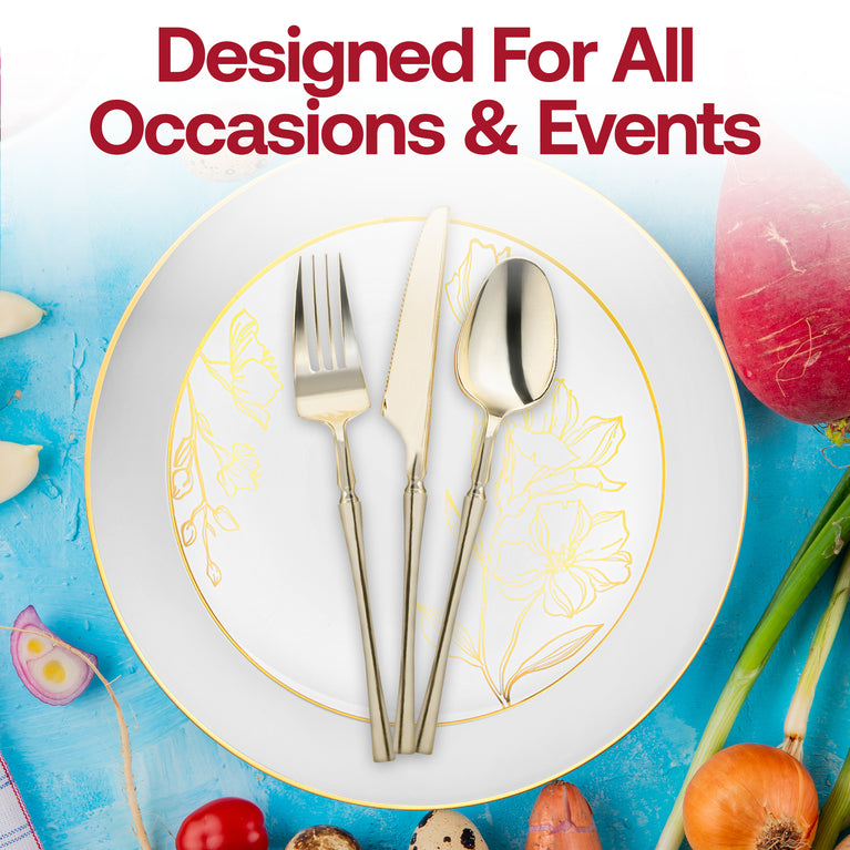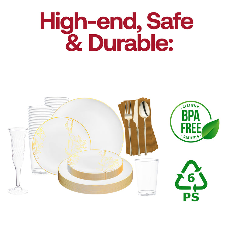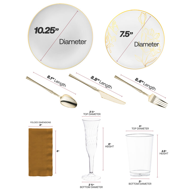 - Service for 150: 150 Dinner plates, 150 salad plates, 150 forks, 150 spoons, 150 knives, 150 16 oz. Tumblers, 150 5 oz champagne flutes and 150 dinner napkins