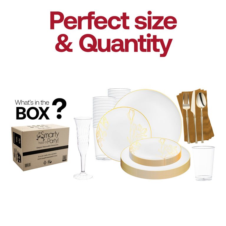- Service for 50: 50 Dinner plates, 50 salad plates, 50 forks, 50 spoons, 50 knives, 50 12 oz. Tumblers, 50 5 oz champagne flutes and 50 dinner napkins