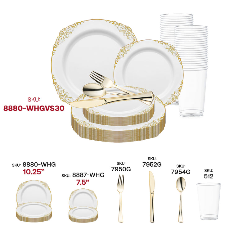 White with Gold Fancy Round Disposable Plastic Wedding Value Set