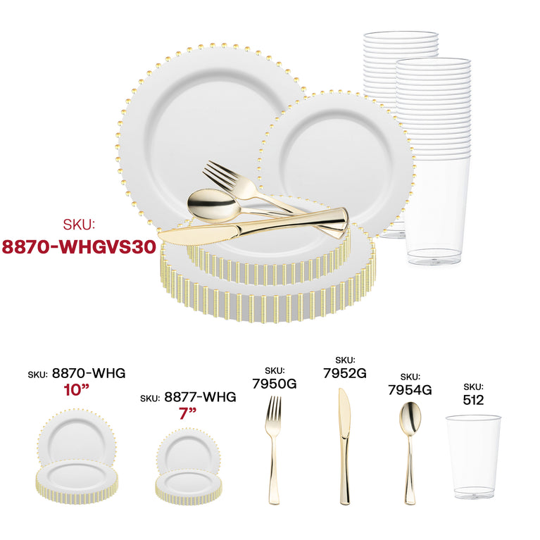 White with Gold Pearl String Round Disposable Plastic Wedding Value Set