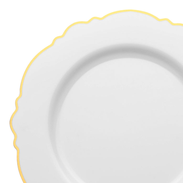 White with Gold Rim Round Blossom Disposable Plastic Dinner Plates (10.25")