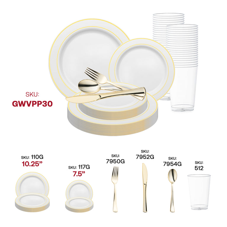- Service for 30: 30 Dinner plates, 30 salad plates, 30 forks, 30 spoons, 30 knives and 30 12 oz. Tumblers