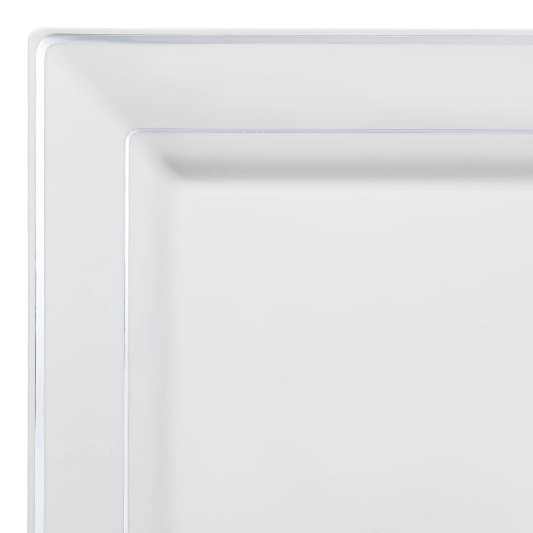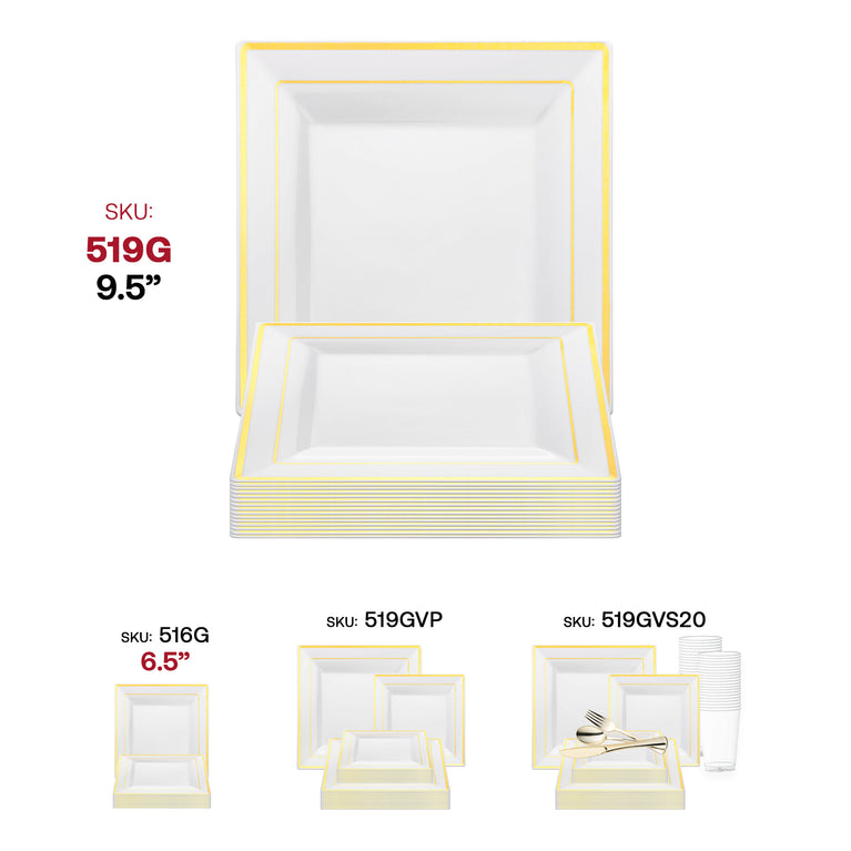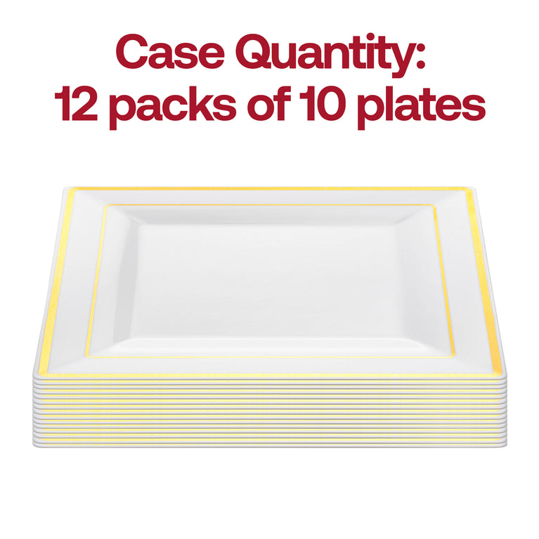 White with Gold Square Edge Rim Plastic Dinner Plates (9.5")
