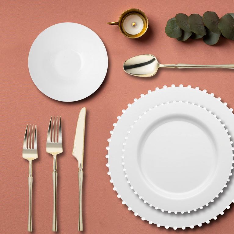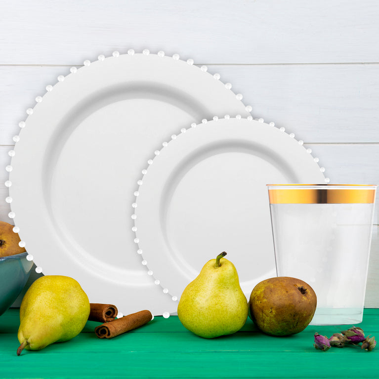 White Pearl String Round Disposable Plastic Tableware Set