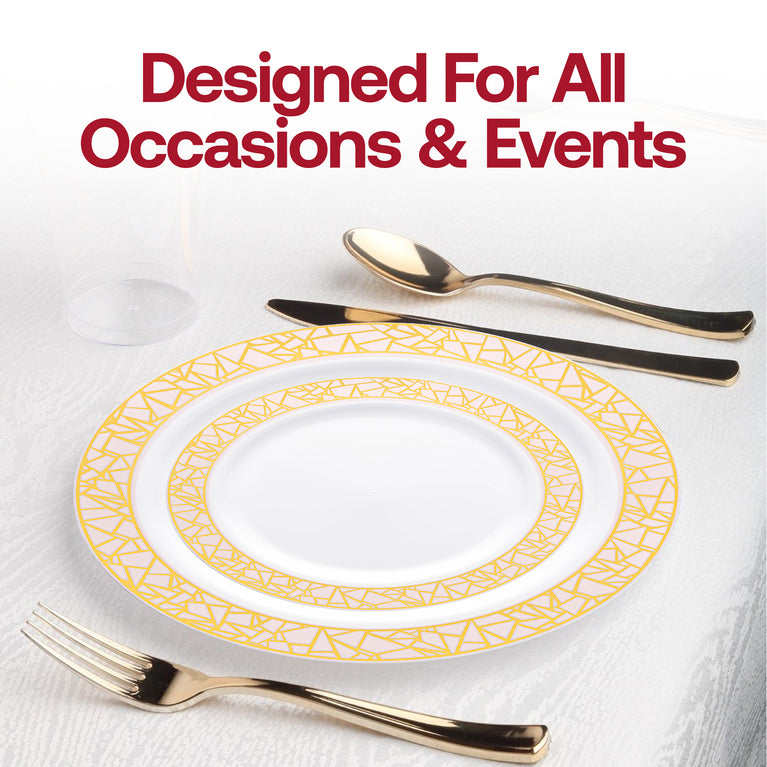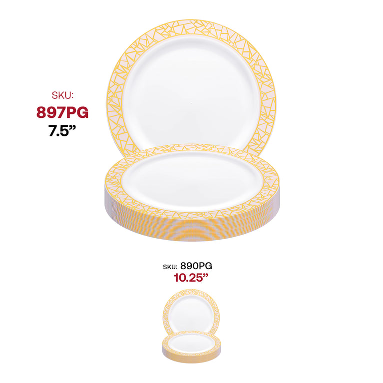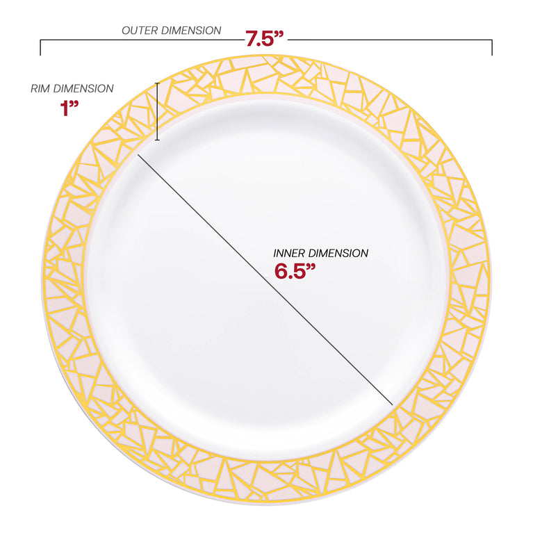 White with Pink and Gold Mosaic Rim Round Plastic Appetizer/Salad Plates (7.5")