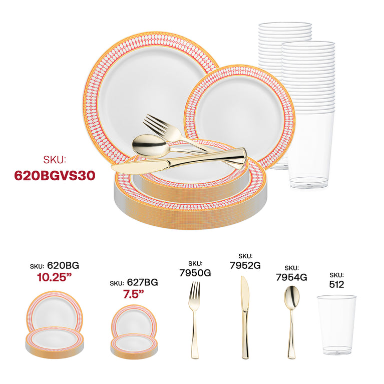 White with Red and Gold Chord Rim Plastic Wedding Value Set