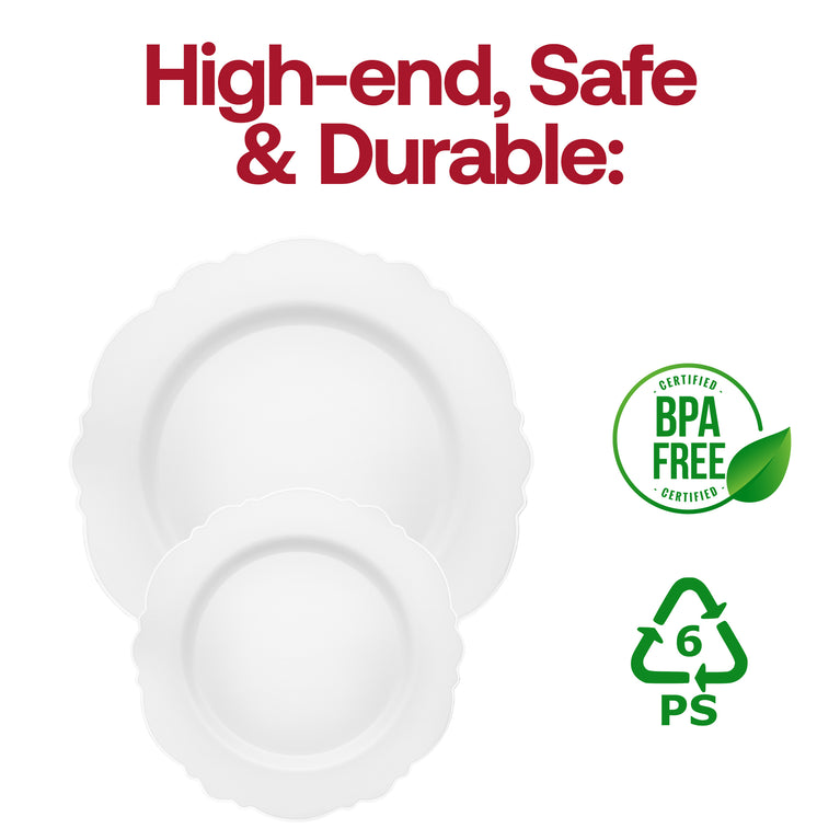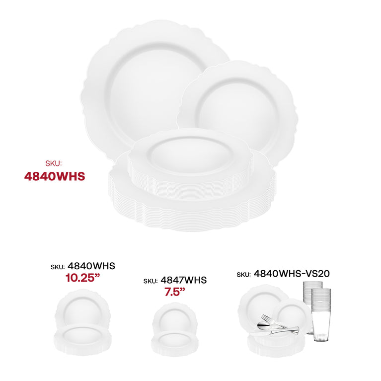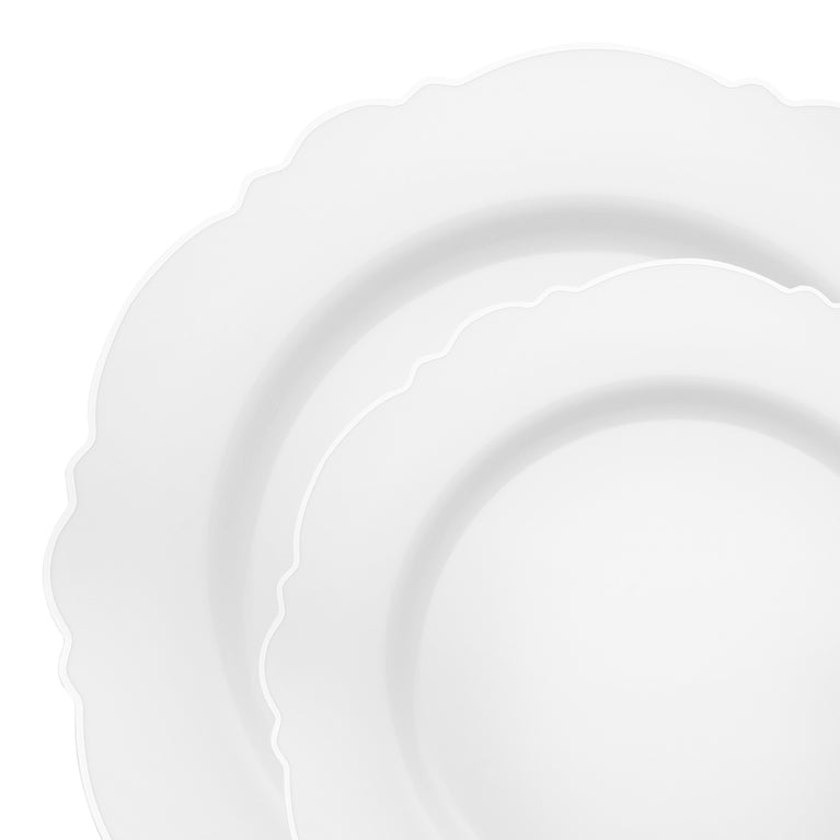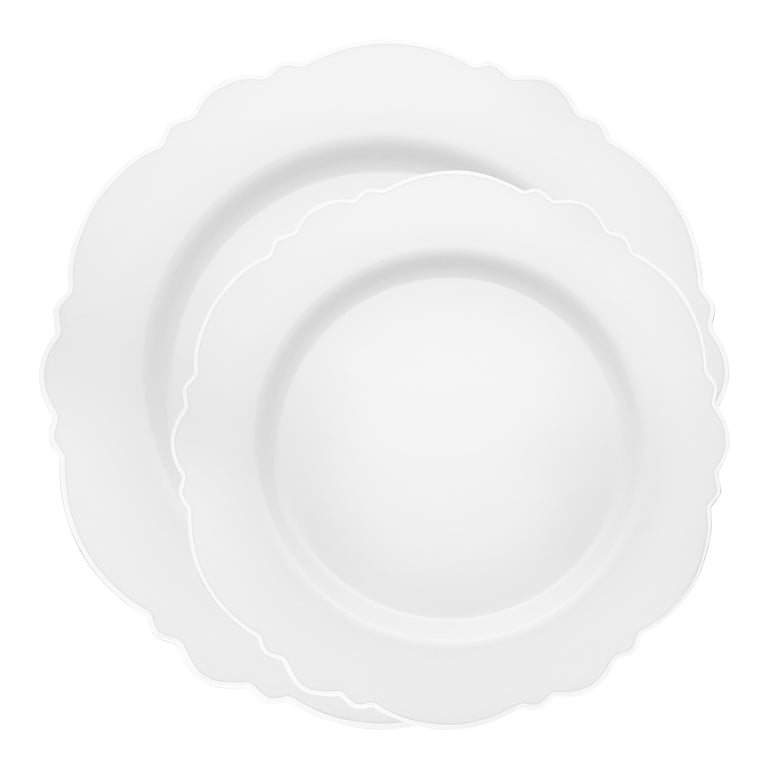 White with Silver Rim Round Blossom Disposable Plastic Dinnerware Value Set