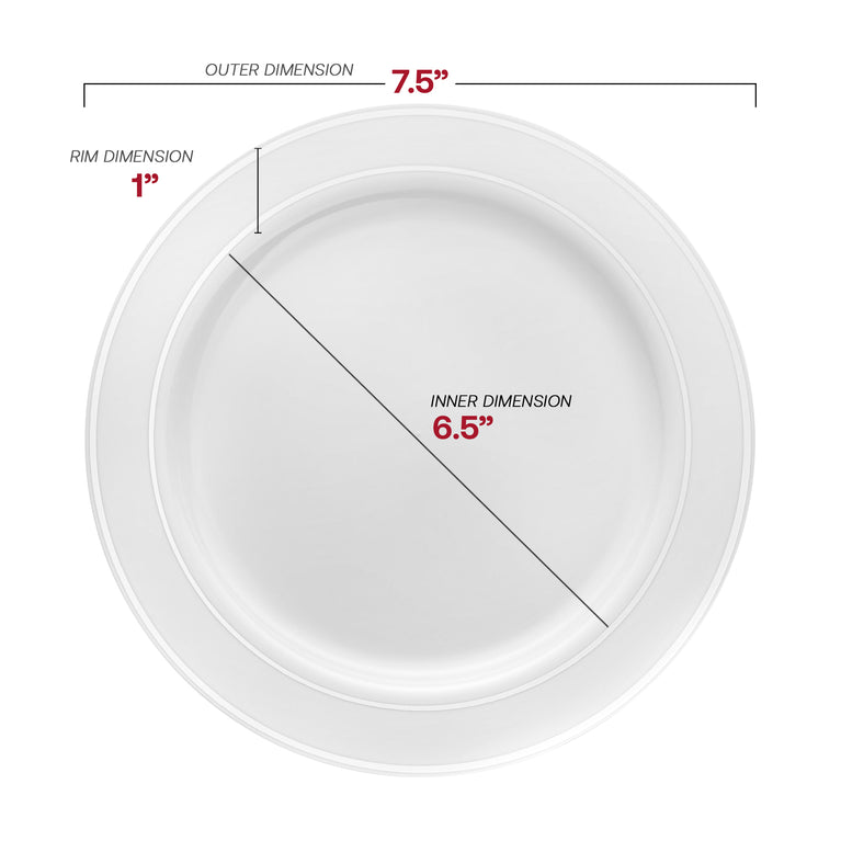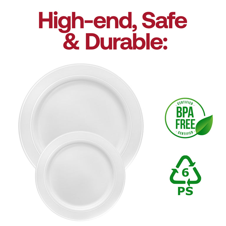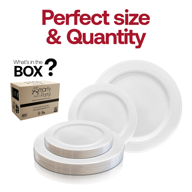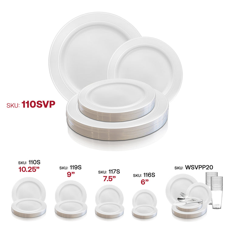White with Silver Edge Rim Plastic Dinnerware Value Set