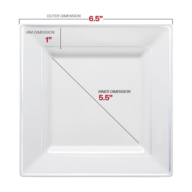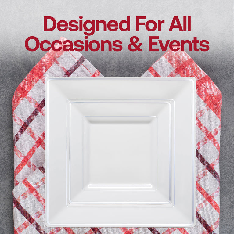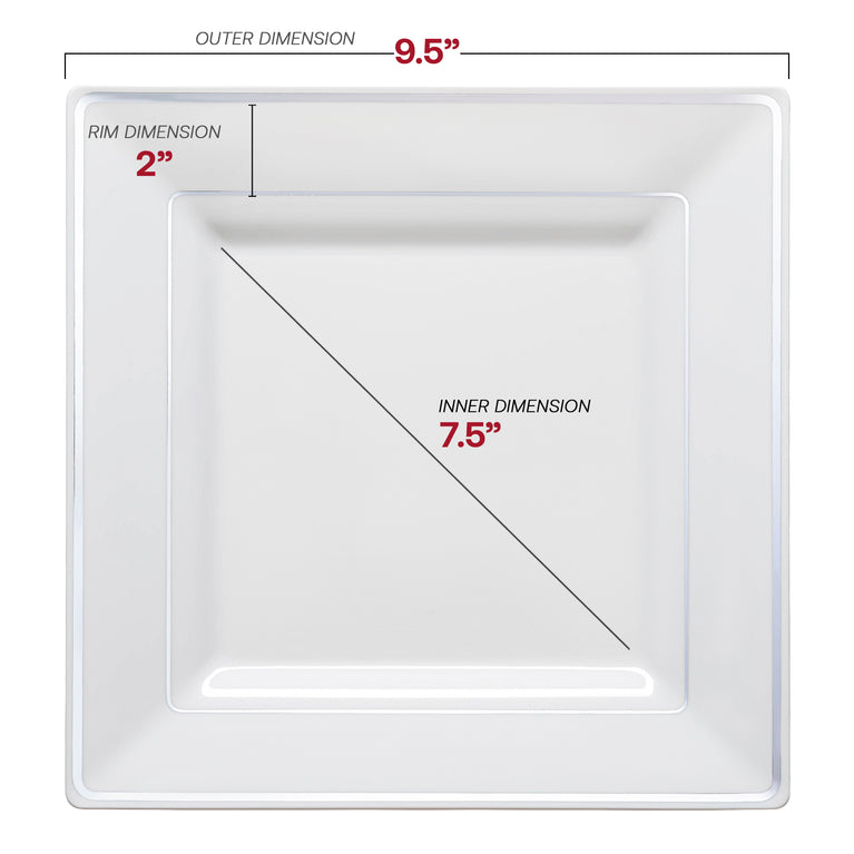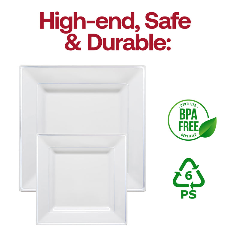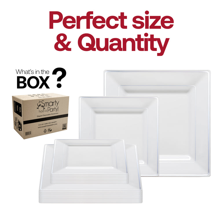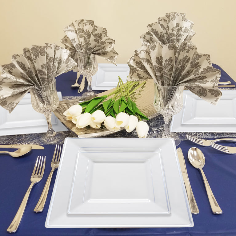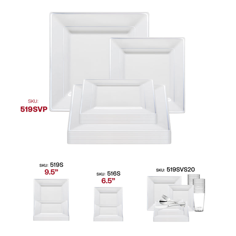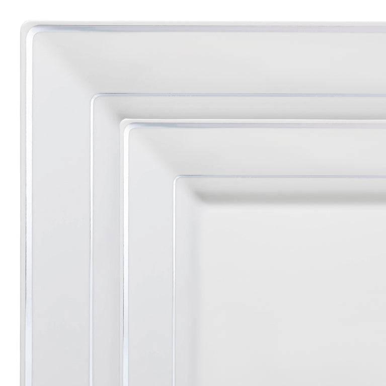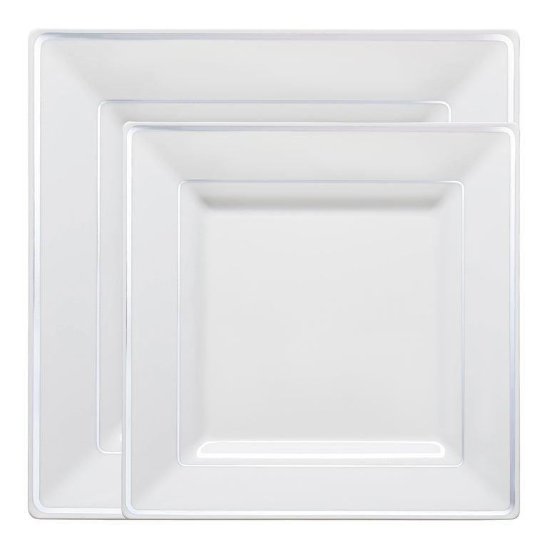 White with Silver Square Edge Rim Plastic Dinnerware Value Set