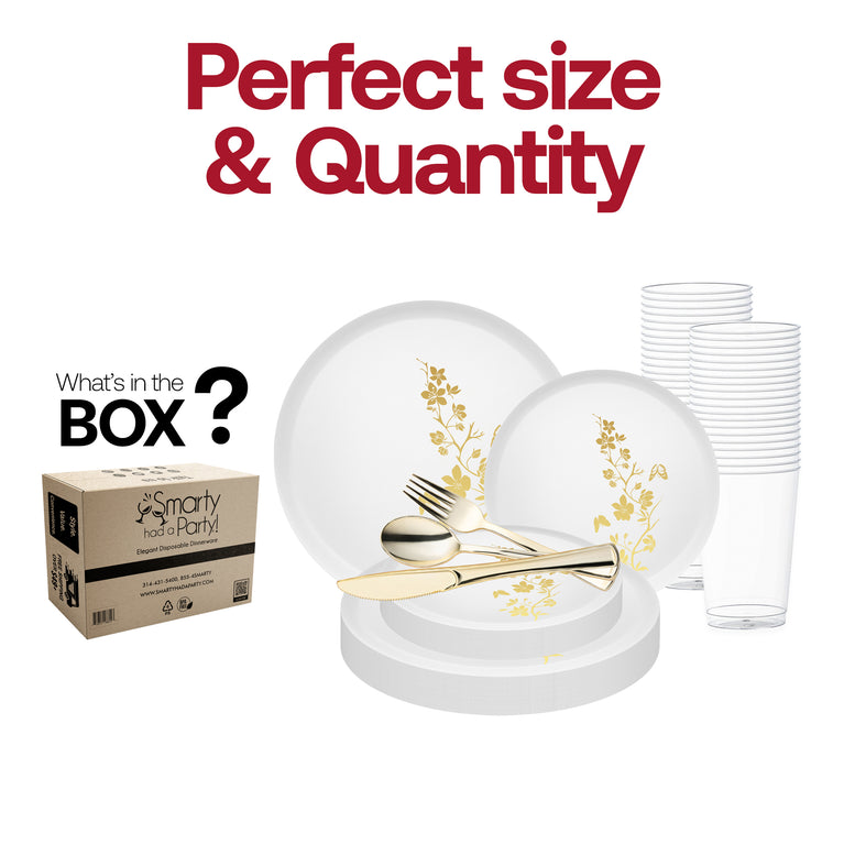 - Service for 30: 30 Dinner plates, 30 salad plates, 30 forks, 30 spoons, 30 knives and 30 12 oz. Tumblers