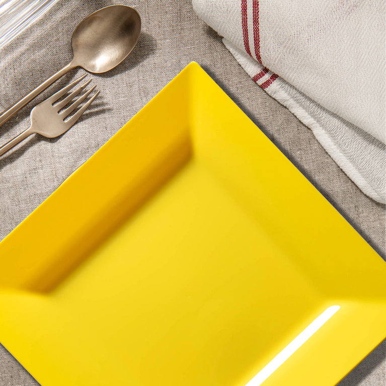 The square shape and slightly raised edges of these beautiful plates will help protect the table against mess and spill, saving effort in clean-up and servings of food. In addition, the undeniably modern shape of these cheerful plates will be an excellent benefit when looking specifically for something you can enjoy to your heart's content!